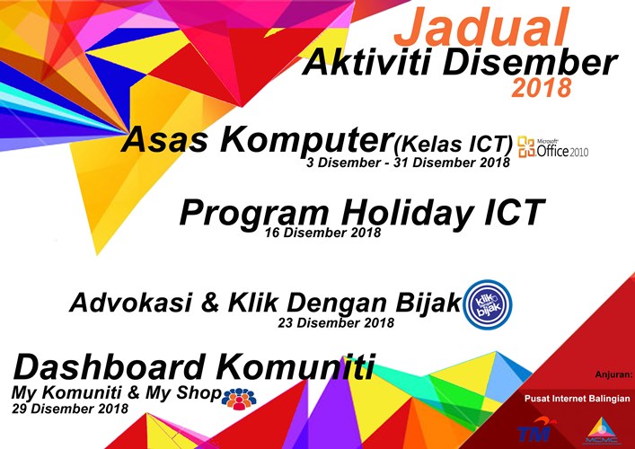 LAPORAN DISEMBER 2018 – Program Riang Ria Cuti Sekolah Tarikh : 17 Disember 2018 Masa : 8.30am – 4.00pm Lokasi : Pusat Internet Balingian, Sarawak. Peserta : Pelajar Sekolah Rendah & Menengah. Tujuan Sempena cuti sekolah […]