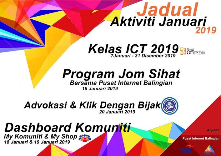 LAPORAN JANUARI 2019 – Program Jom Sihat 2019 Tarikh : 19 Januari 2019 Masa : 7.30am – 5.00PM Lokasi : Balairaya Kampung Pulat, Balingian, Sarawak. Peserta : Komuniti Sekitar Balingian Tujuan Memperkenalkan Pusat Internet sebagai tempat […]