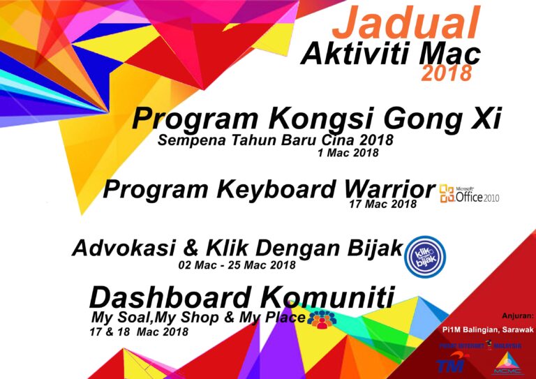 LAPORAN MAC 2018 – PROGRAM KEYBOARD WARRIOR JKKK Tarikh : 17 Mac 2018 Masa : 8.00am- 13.00pm Lokasi : Balairaya Kpg.Pulat,Balingian Peserta : JKKK Kampung Pulat & JKKK Kampung Lintang, Balingian Tujuan Program kali ini […]