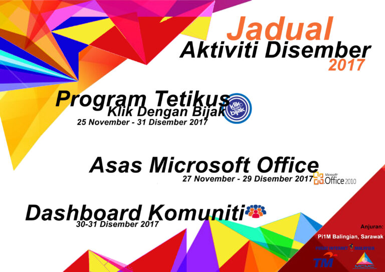LAPORAN OGOS 2017 – BENGKEL INTEL EASY STEP Tarikh : 5 Ogos – 6 Ogos 2017 Masa : 08.30am-12.30pm Lokasi : Pusat Internet 1 Malaysia Balingian Peserta : 8 Orang Tujuan Program Celik Digital. Kursus […]